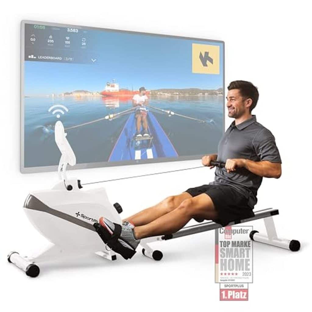 SportPlus Rameur pour la Maison, Disponible avec compatibilité App, Pliable, système de freinage magnétique Silencieux, 8 Niveaux de résistance, Masse d'inertie de 8 kgNOUVEAU DESIGN✅ Le nouveau modèle de notre rameur pour appartement se distingue par son nouveau design et est désormais doté d'un ordinateur d'entraînement. La qualité reste élevée et les mouvements de rame sont authentiques ENTRAÎNEMENT EFFICACE✅ Le rameur d'appartement permet un entraînement de tout le corps efficace et doux pour les articulations. Les pédales anti-dérapantes réglables et le siège égonomique garantissent une séquence de mouvements saine TECHNOLOGIE ROBUSTE✅ Le système de freinage magnétique silencieux et sans entretien ainsi que les 8 niveaux de résistance répondent à toutes les exigences. La masse d'inertie élevée (env. 8 kg) du rameur offre une traction et des mouvements fluides PLIABLE & COMPACT✅ S'adapte à tous les environnements. Le rameur pliable se range en quelques gestes grâce aux roulettes de trasport et est peu encombrant. Dimensions env. 183x51x87 cm / plié env. 95x51x122 cm (LxlxH) Utilisateur : max. 150kg / max. 200cm LE ➕ POUR TOI - Depuis 20 ans, SportPlus produit des appareils de fitness durables et de haute qualité. Si tu as des questions, notre service d'assistance à Hambourg se fera un plaisir d'y répondre personnellement. Pour t'aider à profiter longuement de ta machine de sport, nous disposons d'un stock constant de pièces d'usure et de rechange, garantissant longévité et durabilité399,99 €299,99 €-25%